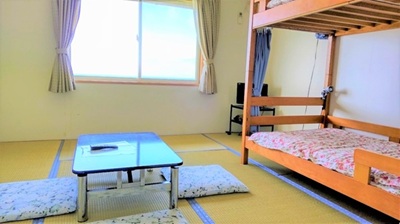 和室(8畳)に、1段ベッドのお部屋です。足の不自由の方、お子様のいるご家族様に喜ばれております♪但し1段・2段は、上記を考慮いたしました上当館にて決めさせていただきます。 他にもお布団が用意しておりますので
