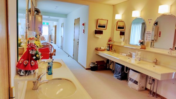 男女に分かれた洗面所です。ドライヤー・固形石鹸が備えてあります。
