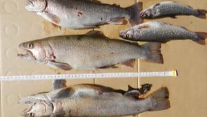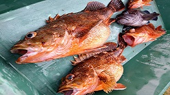 ジギング船・お泊りの釣り人・当館夫婦の釣果です<゜)))彡